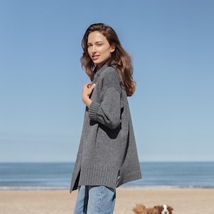 100% skin soft merino wool cardigan, Women knitwear, Simple knit merino sweater, Long relaxed open front women cardigan, Warm cardigan