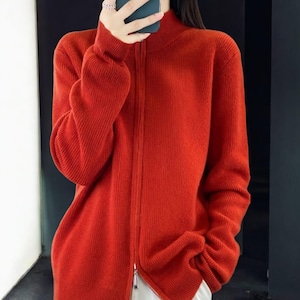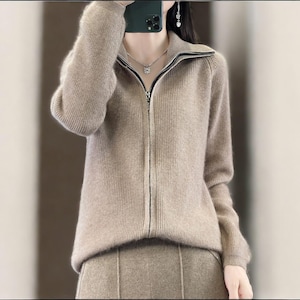 Cashmere wool cardigan, Wool autumn winter zip sweater, Luxury cashmere wool jumper