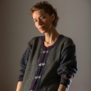 Vintage OQA Norwegian wool knit cardigan sweater/Wool Knit Blazer/Retro wool sweater/Unisex, oversize cardigan/size S-M