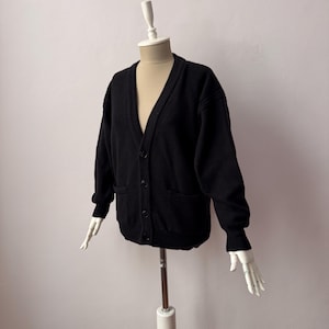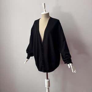 Vintage – 100% Pure Wool – Deep V-neck Black Knit Cardigan