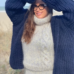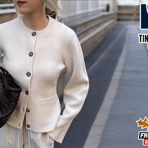 Womens Stylish Minimalist Knitted Jacket, Cozy Winter Wool Coat, Natural Wool Cardigan, Casual Cashmere Knitwear/ MICHELLE