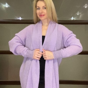 Lilac Baby Alpaca Cardigan – Hand Knit Natural Wool Sweater – One Size – Soft Lightweight Knit – Cozy Alpaca Wool Wrap
